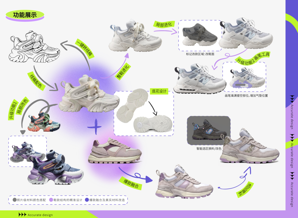此外,AI还可以帮助设计师在传统工作流中选择合适的工具,提高工作效率。有很多客户反馈,智能设计带来的最大提升是让设计师能够快速理解新工具,并在实践中应用。